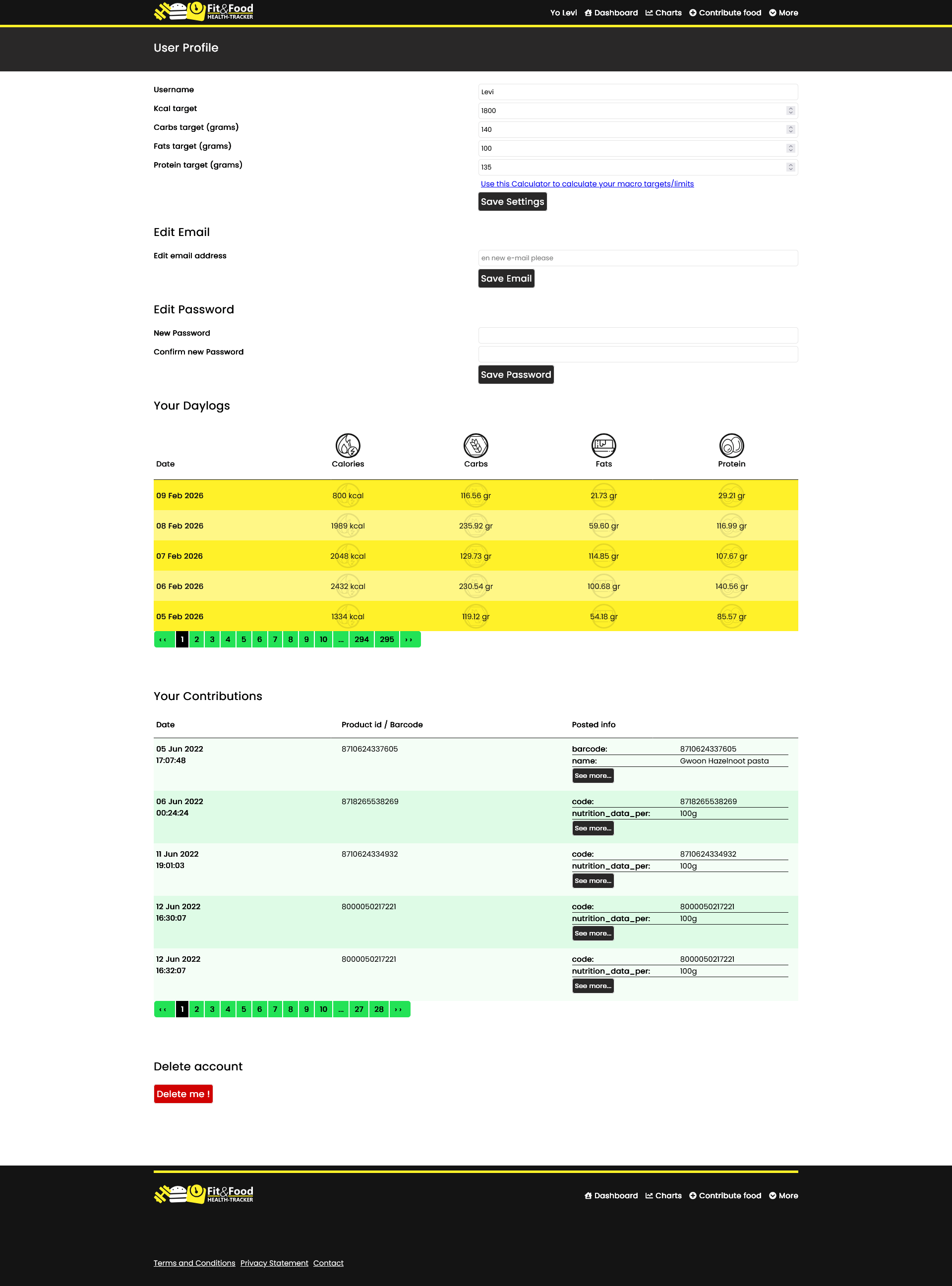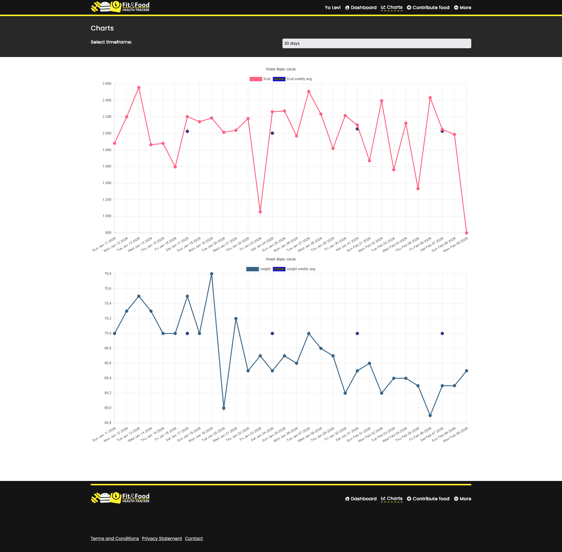 Dit hobbymatige project is een Progressive Web App (PWA) waarmee gebruikers hun voeding, lichaamsgewicht en workouts kunnen bijhouden. De applicatie is geoptimaliseerd voor zowel desktop als mobiel en brengt verschillende logfunctionaliteiten samen in één overzichtelijke web app.